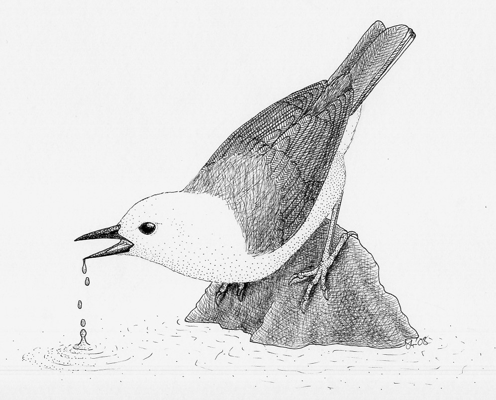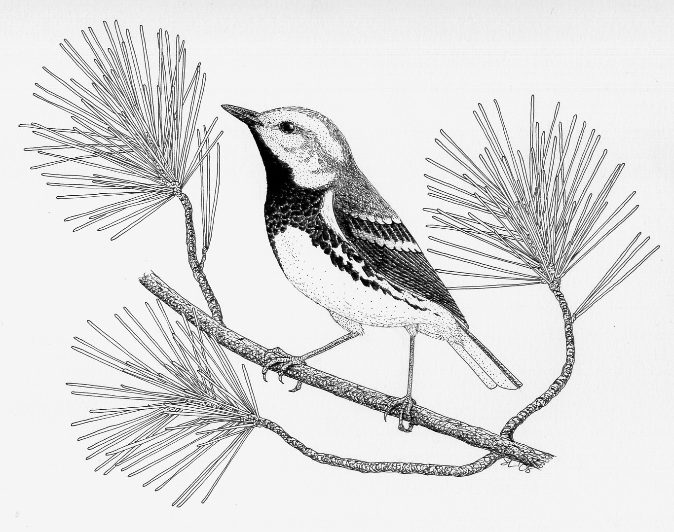 These are drawings I did in 2008 for the now-published book Niagara Birds by John Black and Kayo Roy. At the time they were planning on illustrating all of the accounts with black-and-white artwork, I suppose because the cost to print b&w was less than that for colour, and they had a tight budget. They asked me to draw all of the warblers of Ontario, plus the turkeys (the latter based on a sketch I included in an electronic Christmas card that they liked). Final tally was 38 drawings. Then sometime during the manuscript preparation process they decided to go with colour photographs for most of the accounts instead – I’m not sure if they were having trouble finding enough artists, or realized the cost for colour wasn’t as much as they were expecting, or some other reason. In any case, fewer than half of my drawings ultimately got used. The original plan had been for the book launch to also be an art show of all the contributing artists’ works, but given that the book was mostly photographs, that didn’t happen either.