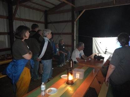 I traveled about three to four hours each afternoon, from one event to the next. The second evening found me northwest of Columbus, OH, at the Big Darby Headwaters Nature Preserve. This is the only event that I truly regretted how it turned out: we got the sheets and everything all set up, and then just as dusk was falling a thunderstorm rolled in. It lasted for just about two hours, and by the time it had blown through, at 10:30, pretty much everyone had had to head home. We did set up a sheet inside the wide mouth of the big tractor garage that sheltered us, and got perhaps a dozen moths, but it wasn’t quite what I’d hoped for. Additionally, the pounding rain on the steel roof was too much for my quiet voice to compete with, so I wasn’t even able to do a presentation or anything, though I did sign books and try my best to answer questions one-on-one. The organizers were Steve Ross of The Nature Conservency-Ohio and his wife Jennifer Kleinrichert, as well as Janet Seeds and Chrissie Wilson, who were all incredibly nice and supportive. The photos of the event were sent to me from them later. I stayed the night with Donna Daniel at her amazing, beautiful farm; Donna was wonderful and gracious and made a delicious breakfast. No link for this event, but you should check out Steve and Jennifer’s farming/homestead blog. Also their Etsy shop; they thanked me for coming with a couple of bars of their handmade soap, which are beautifully made and smell wonderful.