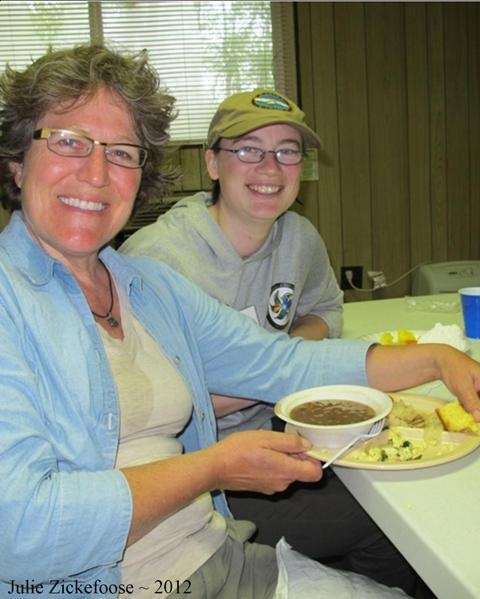 Enjoying lunch following a fun but very wet morning of birding the New River high country with Julie Zickefoose and Connie Toops. Photo by Julie Zickefoose.