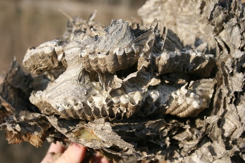 Using my Kaufman Field Guide to Insects I narrowed the genus of this individual down to Brochymena (rough stink bugs, I think so-called for the toothed edges to the pronotum, the section right behind the head), and then went onto BugGuide to figure out the species. I’m pretty sure this is a Four-humped Stink Bug, B. quadripustulata (“four pustules”?), which is one of the more common and widespread members of this genus. The KGI indicates that adults of some Brochymena species hibernate as adults beneath bark, so I’m wondering if these two came in with the firewood.